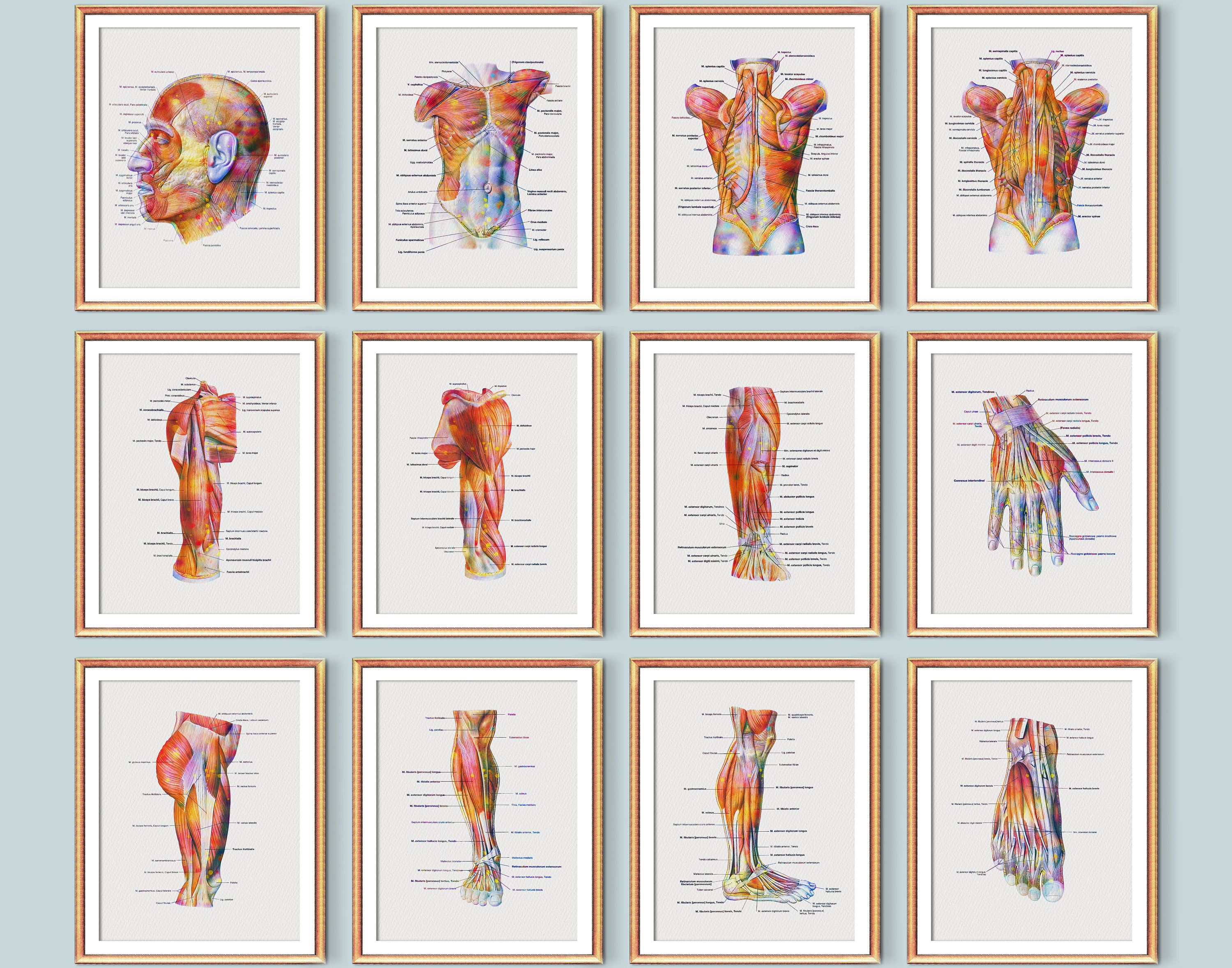 Musculoskeletal System Anatomy Poster Set Labeled Muscles Etsy Israel